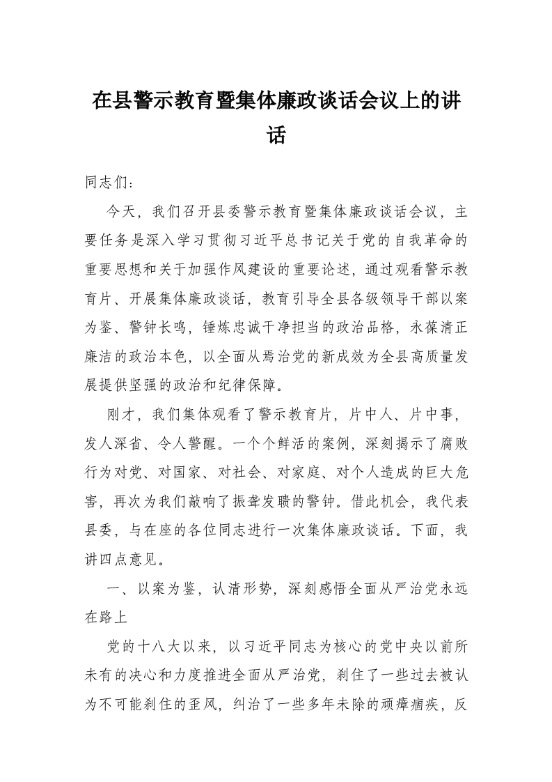 首页讲课讲稿在县警示教育暨集体廉政谈话会议上的讲话