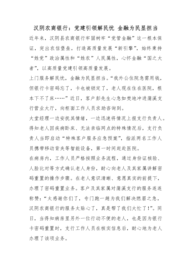 首页材料汇编汉阴农商银行:党建引领解民忧 金融为民显担当