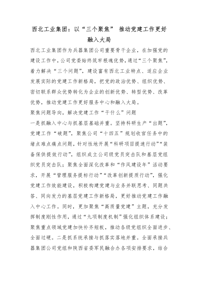 西北工业集团:以“三个聚焦” 推动党建工作更好融入大局_副本
