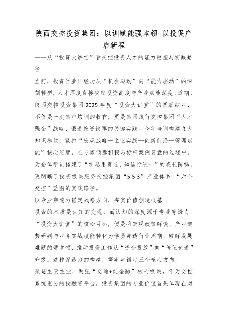 陕西交控投资集团:以训赋能强本领 以投促产启新程_副本