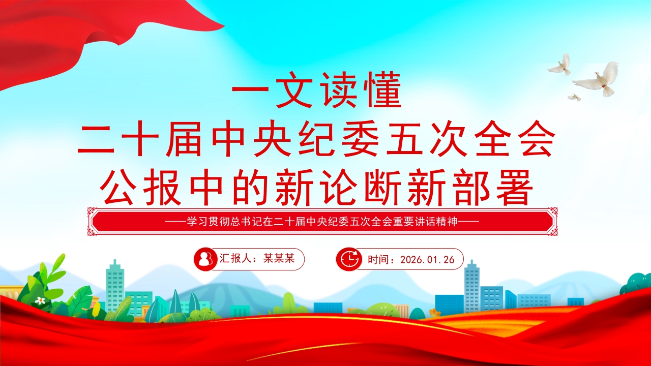 党政风一文读懂二十届中央纪委五次***公报中的新论断新部署PPT党课