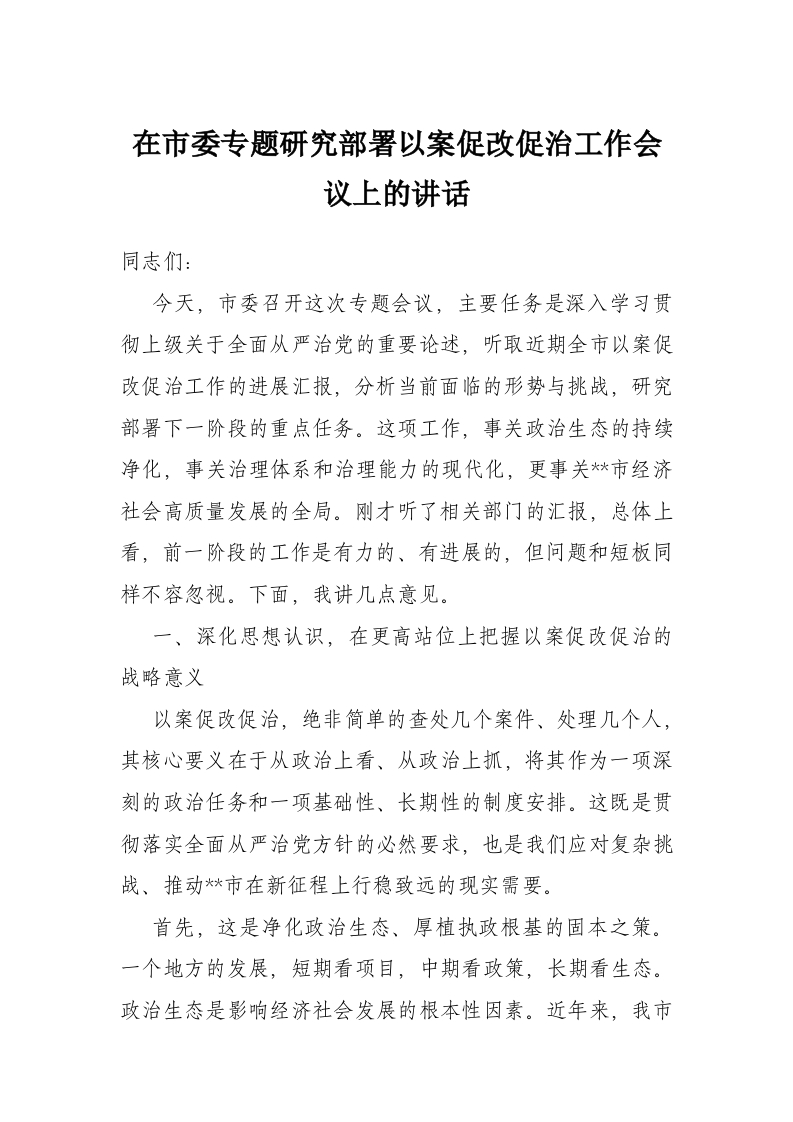 在市委专题研究部署以案促改促治工作会议上的讲话