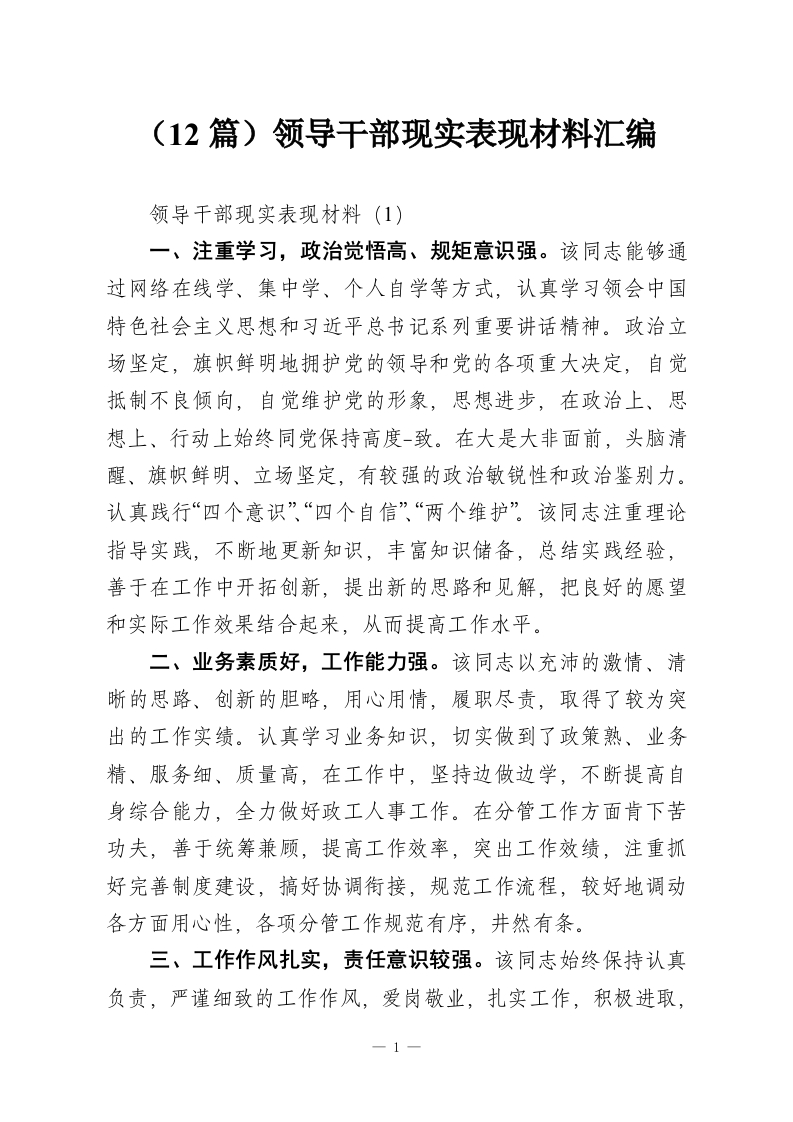 首页讲课讲稿(12篇)领导干部现实表现材料汇编
