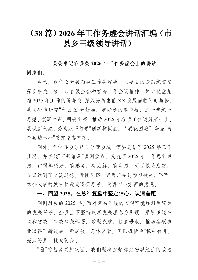 首页讲课讲稿(38篇)2026年工作务虚会讲话汇编(市县乡三级领导讲话)