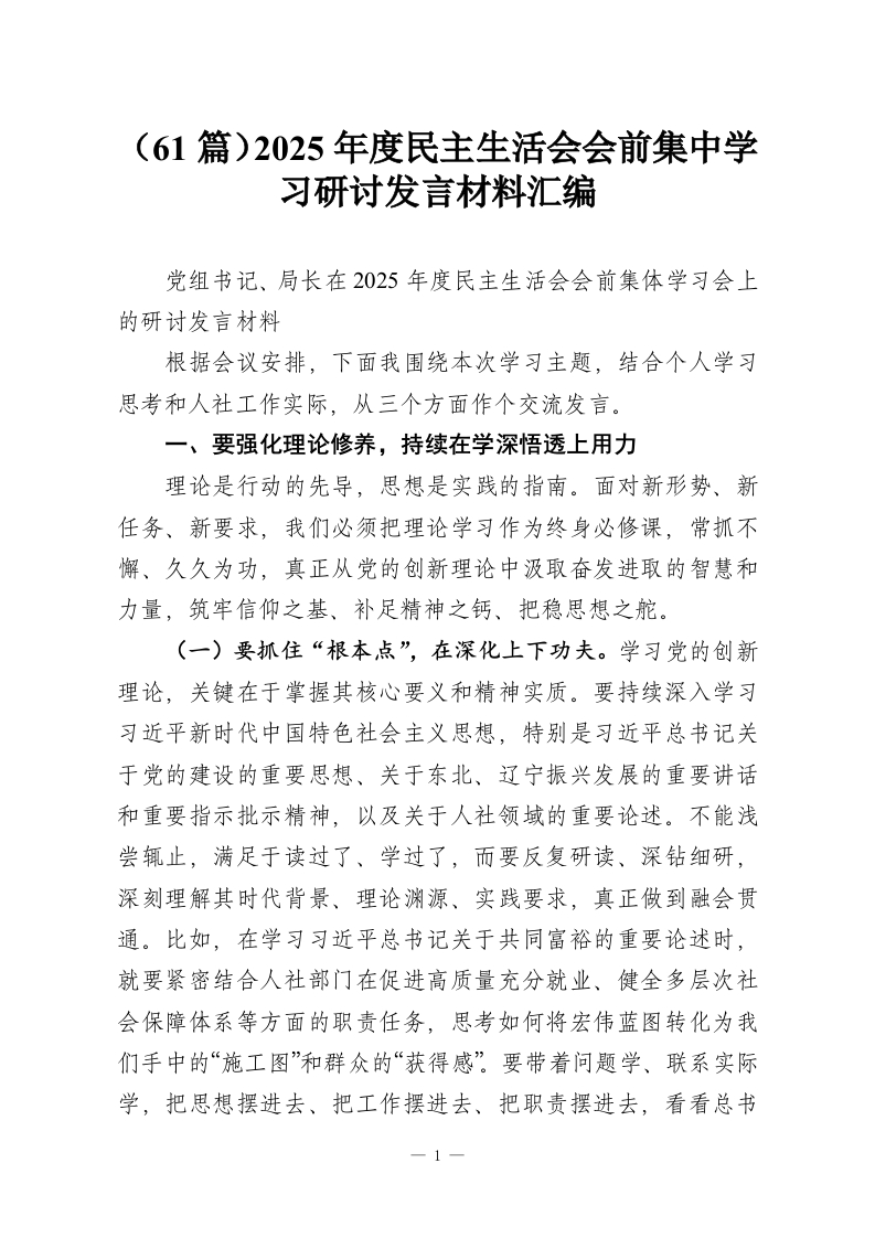首页讲课讲稿(61篇)2025年度民主生活会会前集中学习研讨发言材料汇编