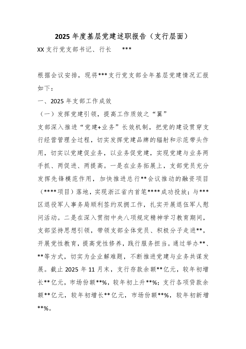 首页讲课讲稿2025年度基层党建述职报告(支行层面)